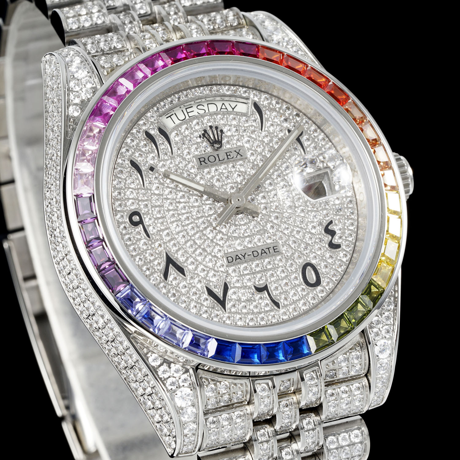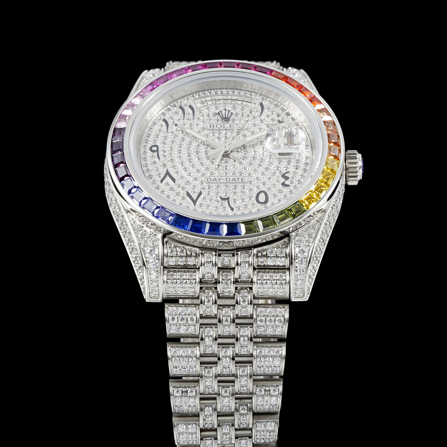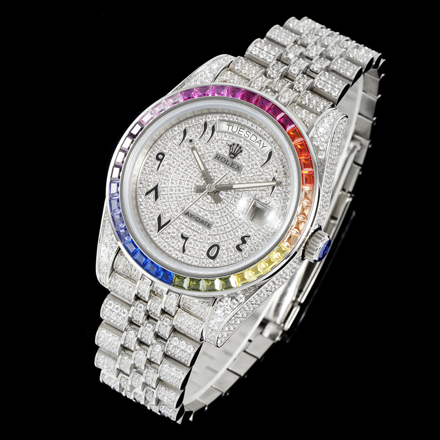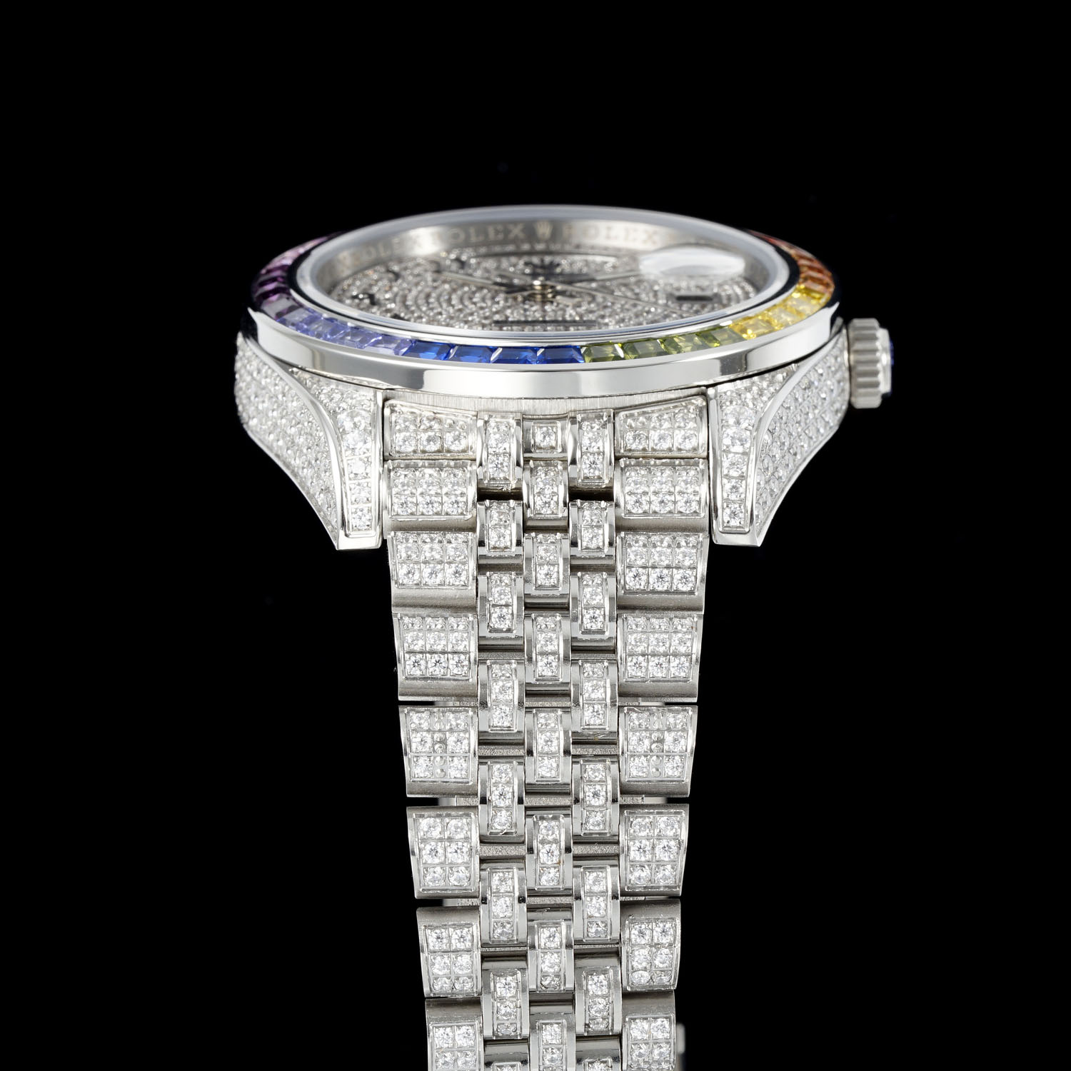 השעון של Rolex Extreme Luxury Starry Edition עשוי מפלדת אל חלד 904 ומרוצף ביהלומי סברובסקי ברמה הגבוהה ביותר. זהו פרשנות של איכות יוקרתית, מסנוורת ומקסימה. המארז והצמיד משובצים כולם ביהלומים יפים, נוצצים עם זהב